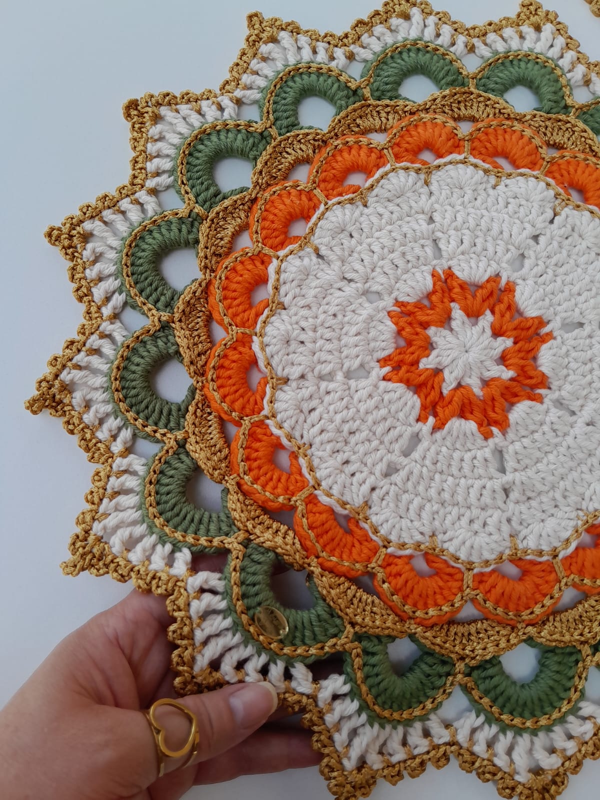 Detalhes e acabamentos no fio Encanto dourado 100% viscose!